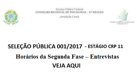 Seleção de Estágio do CRP 11 - Horários das Entrevistas - Segunda Fase