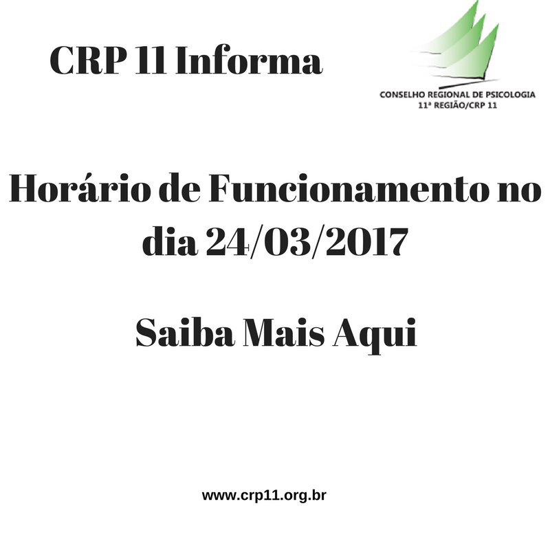 Horário de Funcionamento do CRP 11 no Dia 24/03/2017