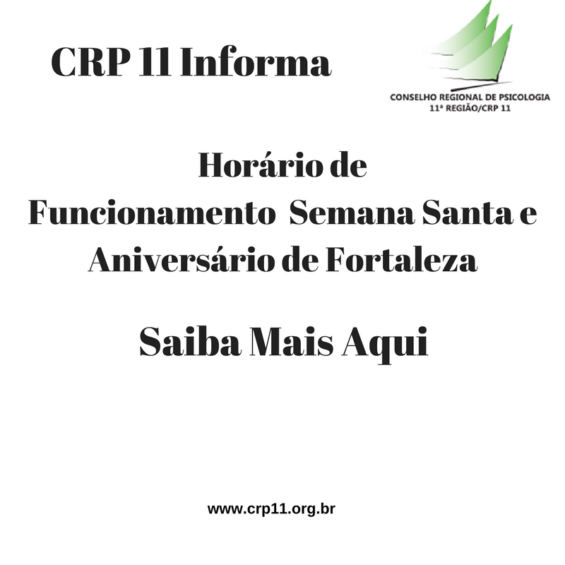 Horário de Funcionamento do CRP 11 Semana Santa e Aniversário de Fortaleza