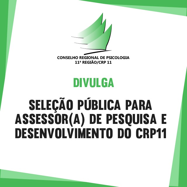 #CRPdivulga: Seleção Pública para Assessor (a) de Pesquisa e Desenvolvimento do CRP 11