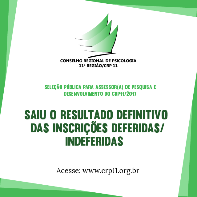 CRP 11 Divulga Resultado Definitivo das Inscrições Deferidas e Indeferidas do Edital 002/2017