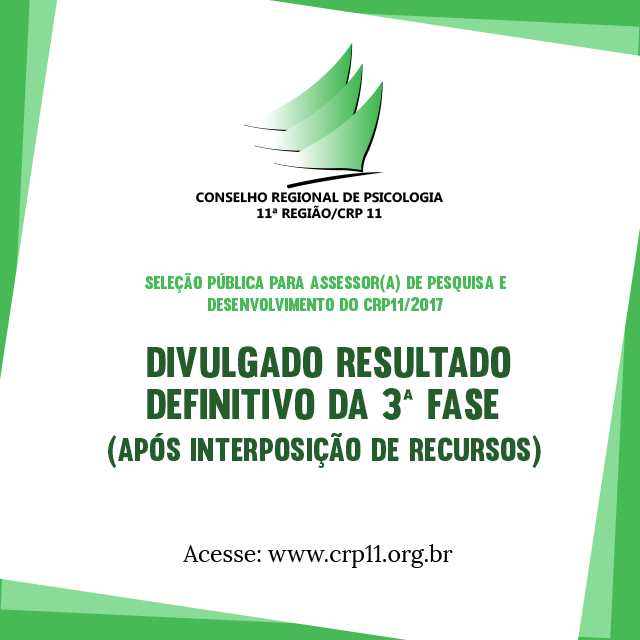 #CRPdivulga: Divulgado o Resultado Definitivo da 3ª Fase da Seleção do Edital 002/2017.