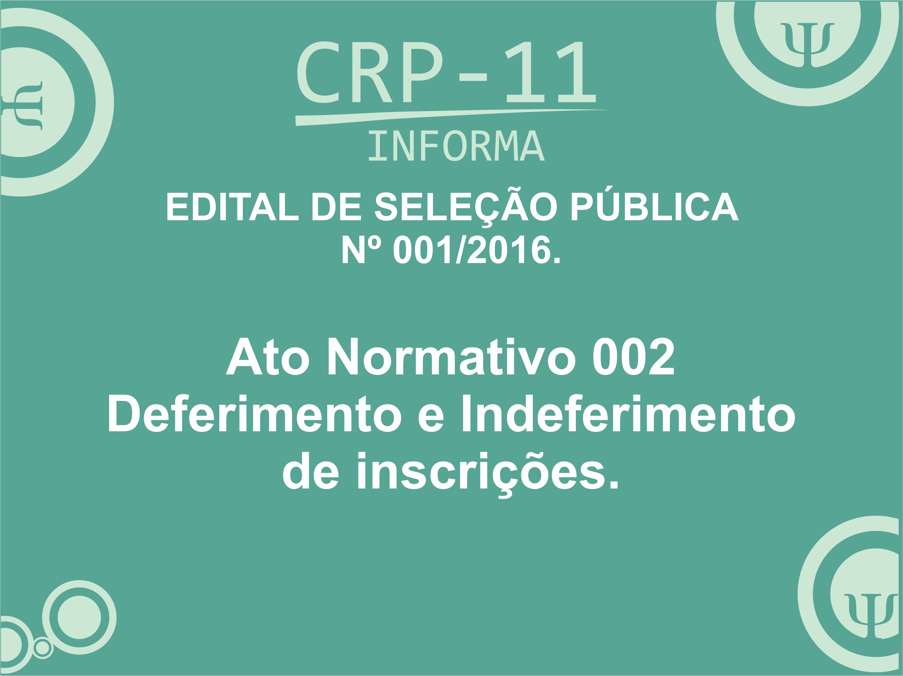 Clique aqui para ver o Ato Normativo 002 – Resultado de Inscrições Deferidas ou Indeferidas.