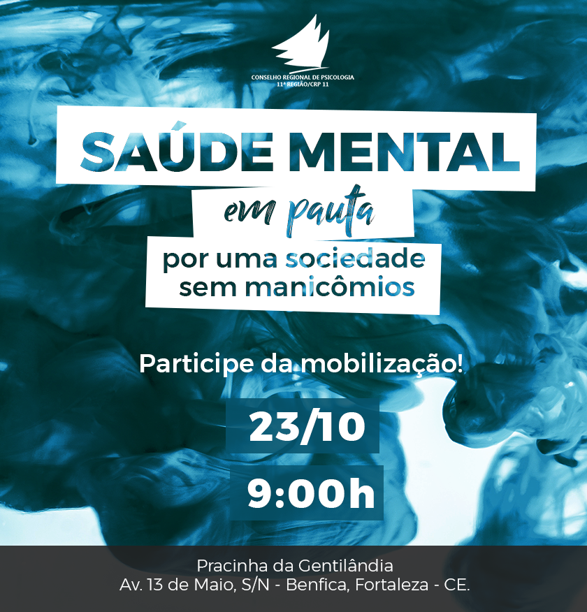Em alusão ao importante Dia da Saúde Mental, celebrado em 10 de outubro, a Comissão de Saúde do Conselho Regional de Psicologia 11ª Região (CRP11-CE) programou a ação "Saúde Mental em pauta: por uma sociedade sem manicômios" em conjunto com o ABRAÇA RAPS. A mobilização pretende protestar contra os desmontes da Saúde Mental, contra a precarização dos serviços da RAPS e contra o sucateamento dos equipamentos de saúde de atenção psicossocial, além de, claro, debater contra os modelos manicomiais ainda presentes na saúde mental. Assim, convidamos você a se juntar conosco nessa luta e a mobilizar-se no dia 23 de outubro, na Pracinha da Gentilândia, localizada na Av. 13 de Maio, S/N - Benfica, a partir das 9:00h. Organização: Abraça RAPS Apoio: Fórum da luta antimanicomial e CRP-11