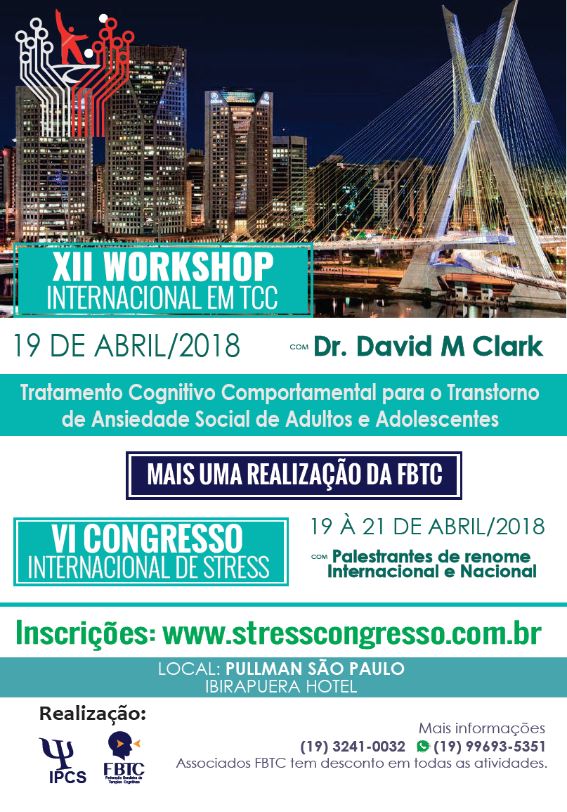 O ano de 2018 aguarda muitas boas novidades para os interessados nas abordagens cognitivo-comportamental. A Federação Brasileira de Terapias Cognitivas – FBTC está organizando o XII Workshop internacional de TCC, em conjunto com o VI Congresso Internacional de Stress, idealizado pelo Instituto de Psicologia e Controle do Stress, que acontecem em abril de 2018.