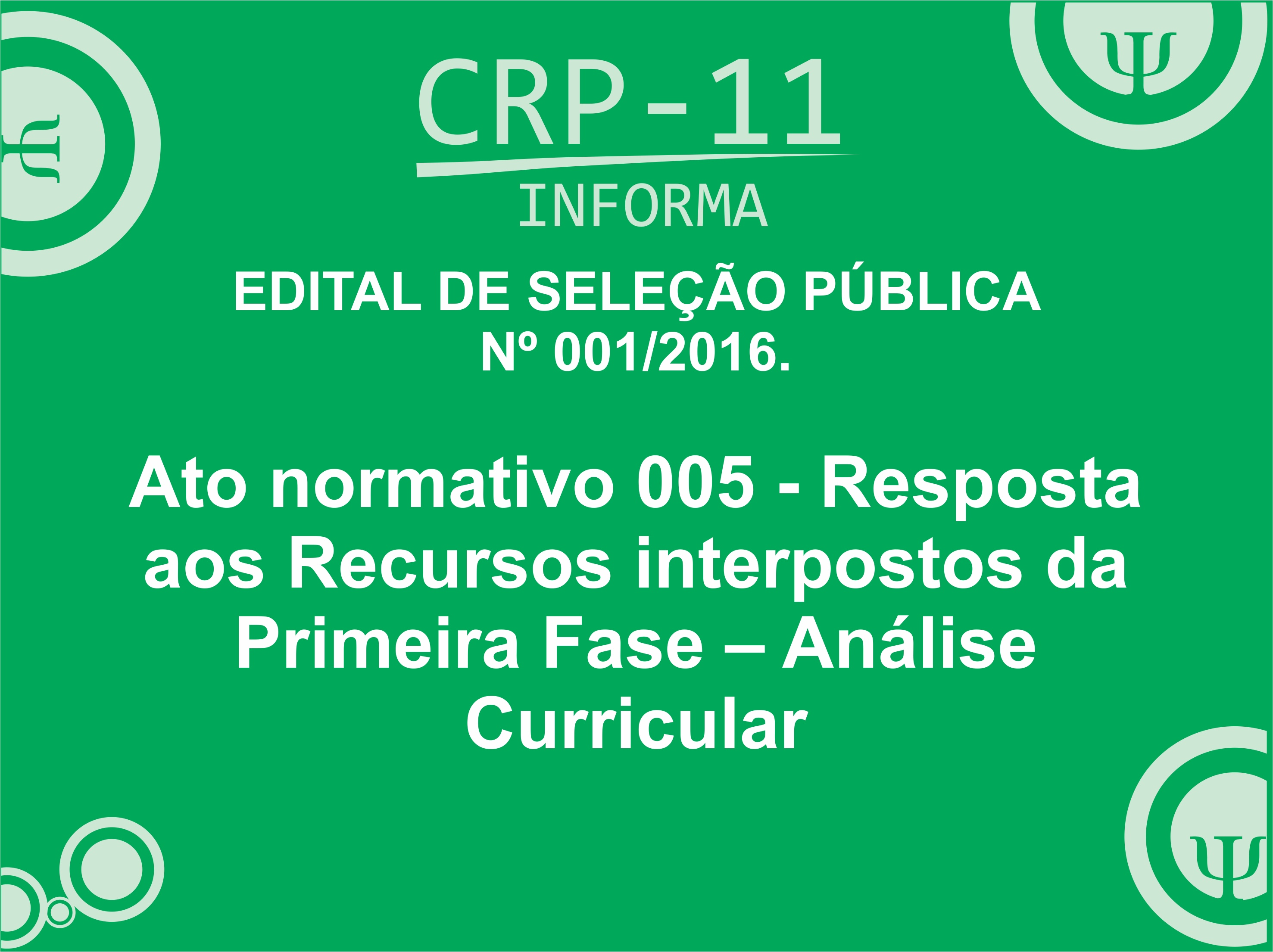 EDITAL DE SELEÇÃO PÚBLICA Nº 001/2016. SELEÇÃO PÚBLICA PARA HABILITAÇÃO DESTINADA AO PREENCHIMENTO DE UMA VAGA PARA O CARGO DE PSICÓLOGO (A) FISCAL E COMPOSIÇÃO DE BANCO DE DADOS PARA FISCAL DO CRP 11.
