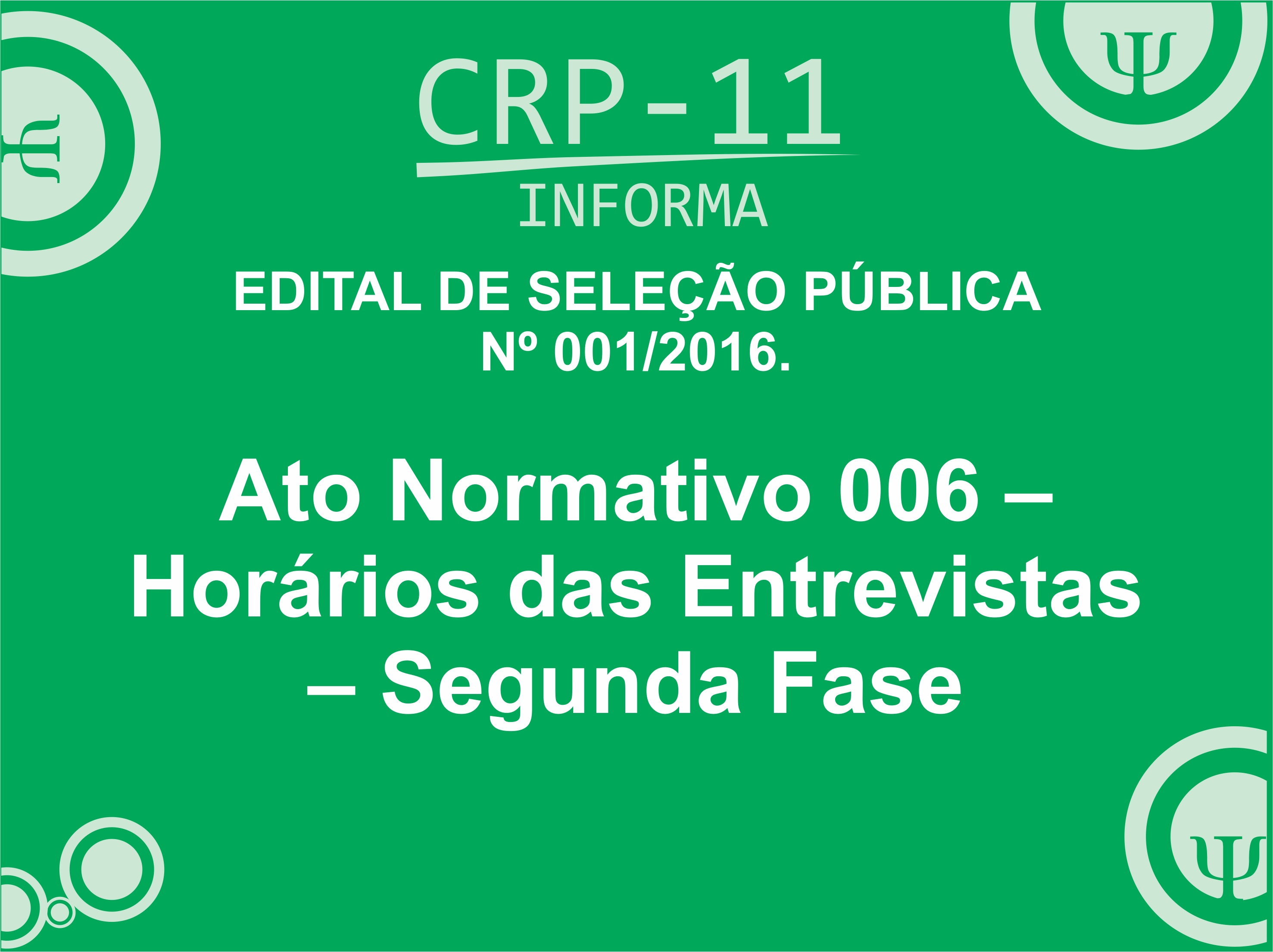 EDITAL DE SELEÇÃO PÚBLICA Nº 001/2016. SELEÇÃO PÚBLICA PARA HABILITAÇÃO DESTINADA AO PREENCHIMENTO DE UMA VAGA PARA O CARGO DE PSICÓLOGO (A) FISCAL E COMPOSIÇÃO DE BANCO DE DADOS PARA FISCAL DO CRP 11.