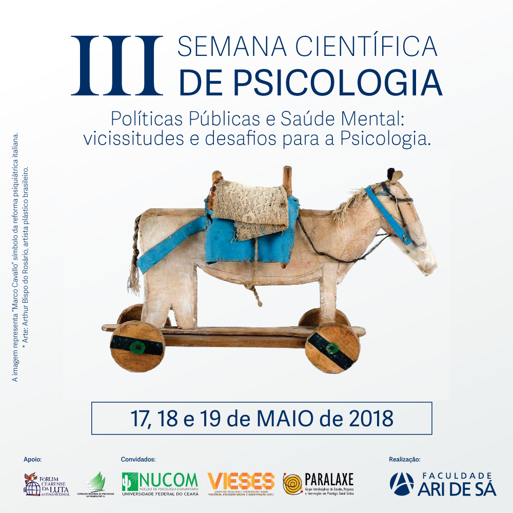 A Faculdade Ari de Sá promove, nos dias 17, 18 e 19 de maio, a III Semana de Psicologia da Faculdade Ari de Sá, cujo tema é Políticas Públicas e Saúde Mental: vicissitudes e desafios para a Psicologia, alusivo aos debates de maio da luta antimanicomial e da saúde mental.