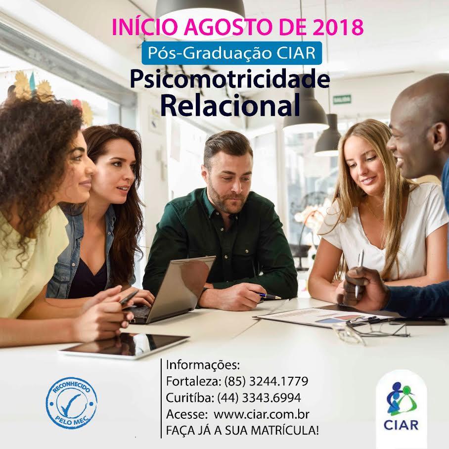 O Centro Internacional de Análise Relacional (CIAR) da Faculdade IPPEO realiza o Curso de Pós-Graduação Lato Sensu - Formação Especializada em Psicomotricidade Relacional, cuja turma inicia nos dias 10 e 11 de agosto de 2018, em Fortaleza-CE.