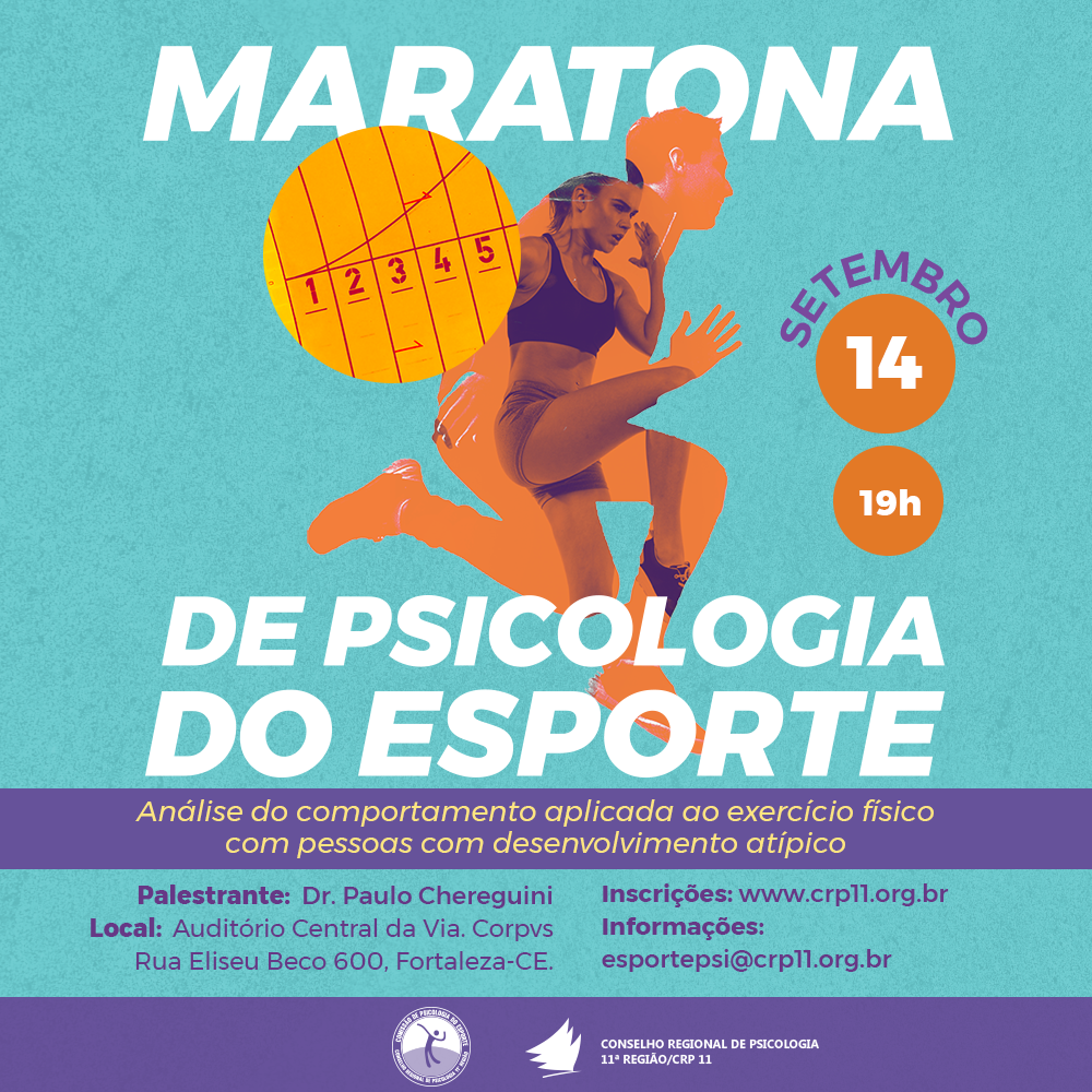 A Comissão de Psicologia do Esporte do Conselho Regional de Psicologia 11ª Região realiza a Maratona de Psicologia do Esporte, e traz um ciclo de palestras sobre Psicologia do Esporte ao longo de 2018, com roteiros itinerantes que já passaram na capital e no interior.
