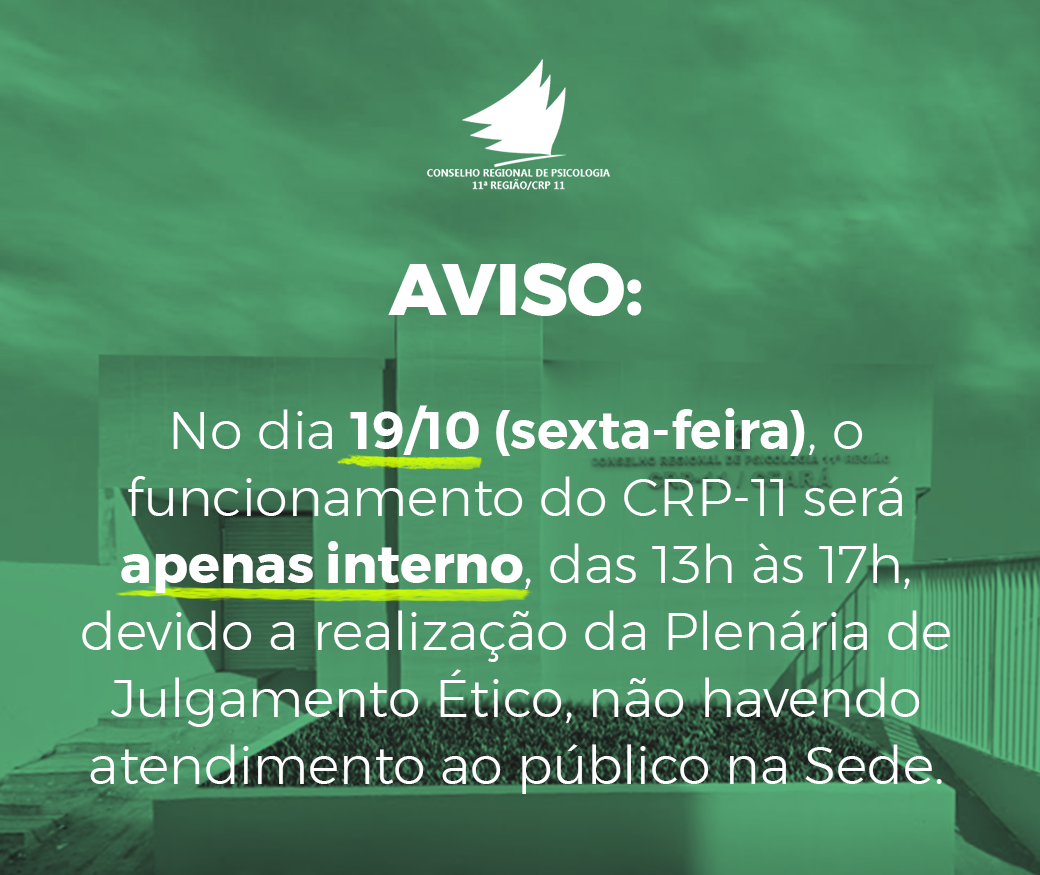 O CONSELHO REGIONAL DE PSICOLOGIA DA 11ª REGIÃO resolve, CONSIDERANDO a realização da Plenária de Julgamento Ético; CONSIDERANDO a necessidade de salvaguardar os trabalhos do CRP-11 em sua Sede, com a organização de expedientes internos: