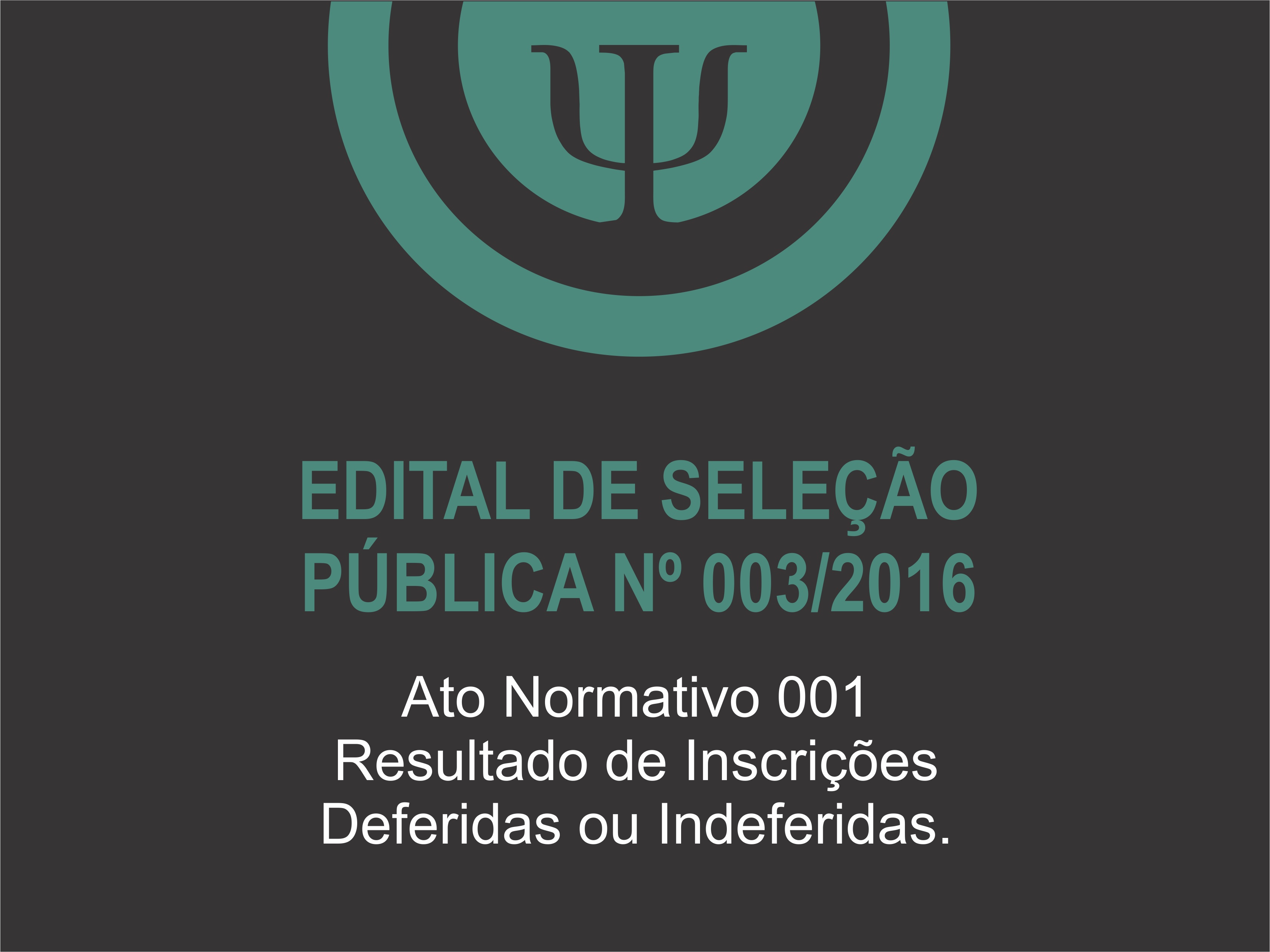 EDITAL DE SELEÇÃO Nº003/2016: Resultado de Inscrições Deferidas ou Indeferidas.