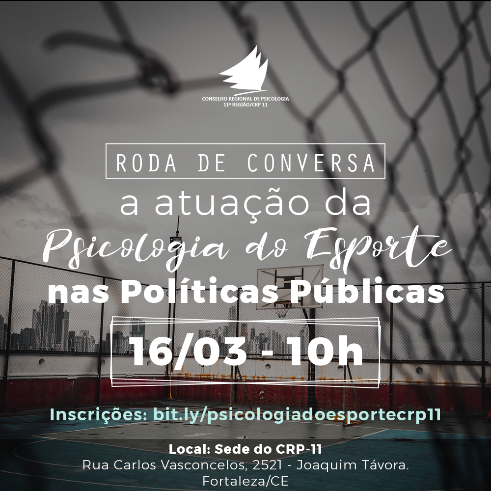 Comissão de Psicologia do Esporte realiza roda de conversa sobre Psicologia do Esporte e Políticas Públicas, neste sábado (16)