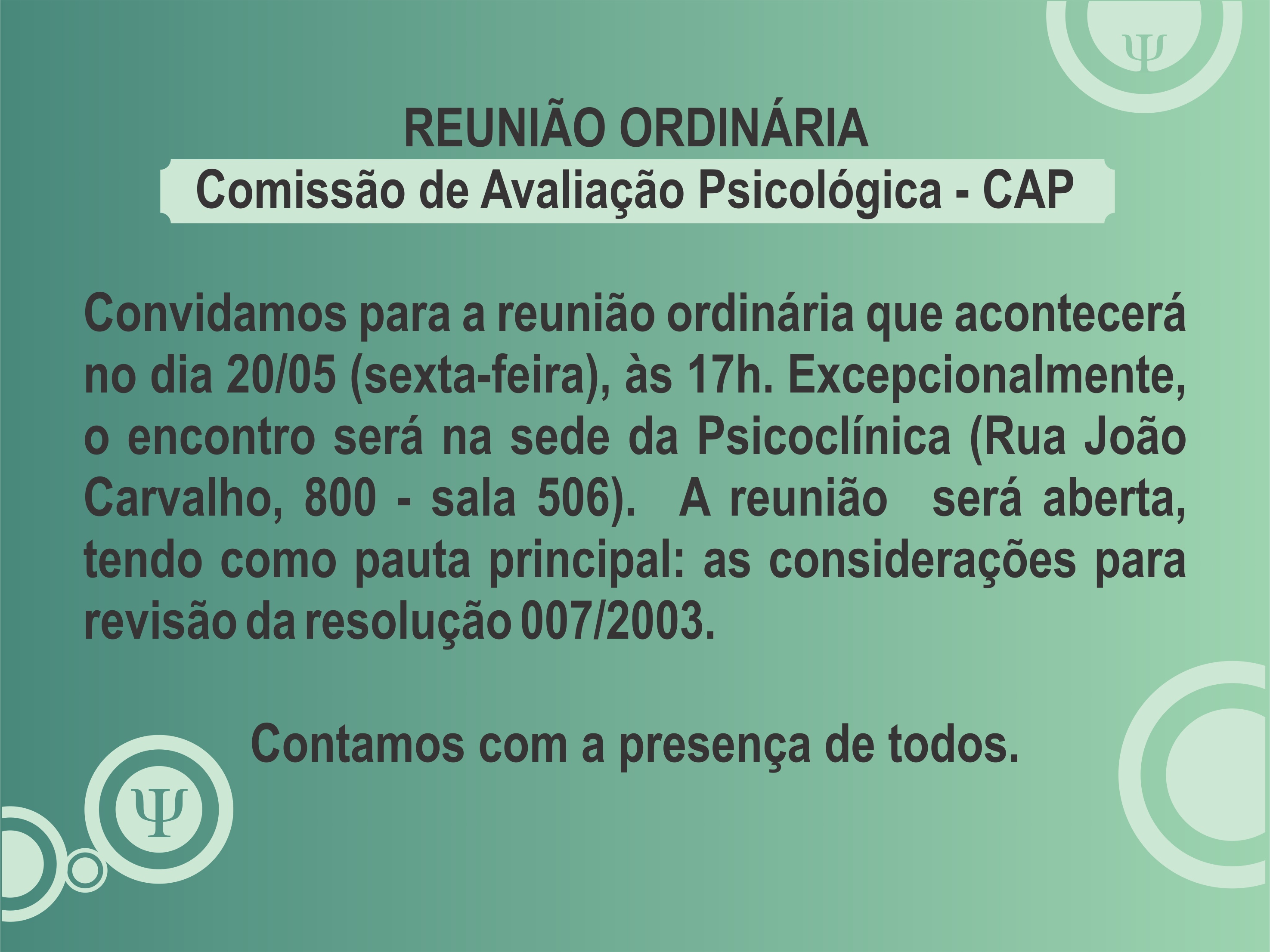 Reunião da Comissão de Avaliação Psicológica - CAP
