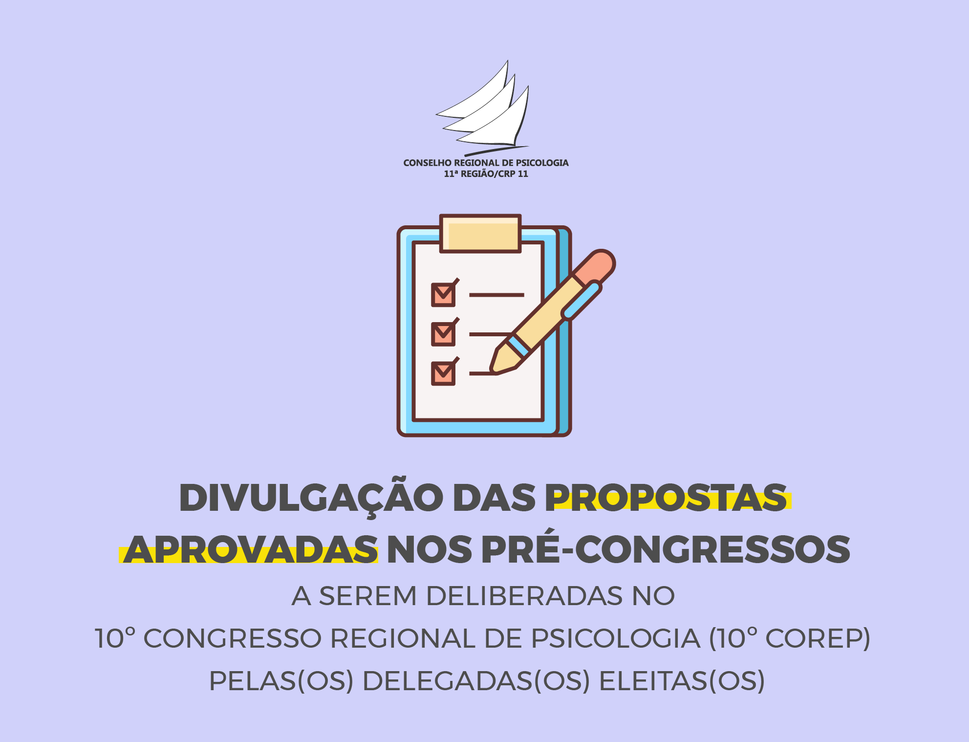Divulgação das Propostas Aprovadas nos Pré-Congressos e que Serão Deliberadas no 10º Congresso Regional de Psicologia (10º COREP) pelas(os) Delegadas(os) Eleitas(os) - Ceará