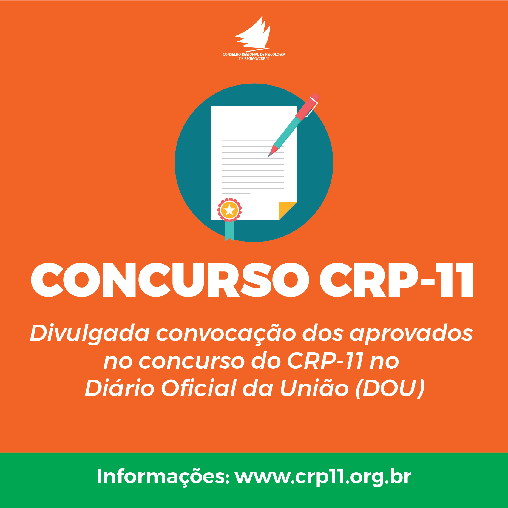 Divulgada convocação dos aprovados no concurso do CRP-11 no Diário Oficial da União (DOU)
