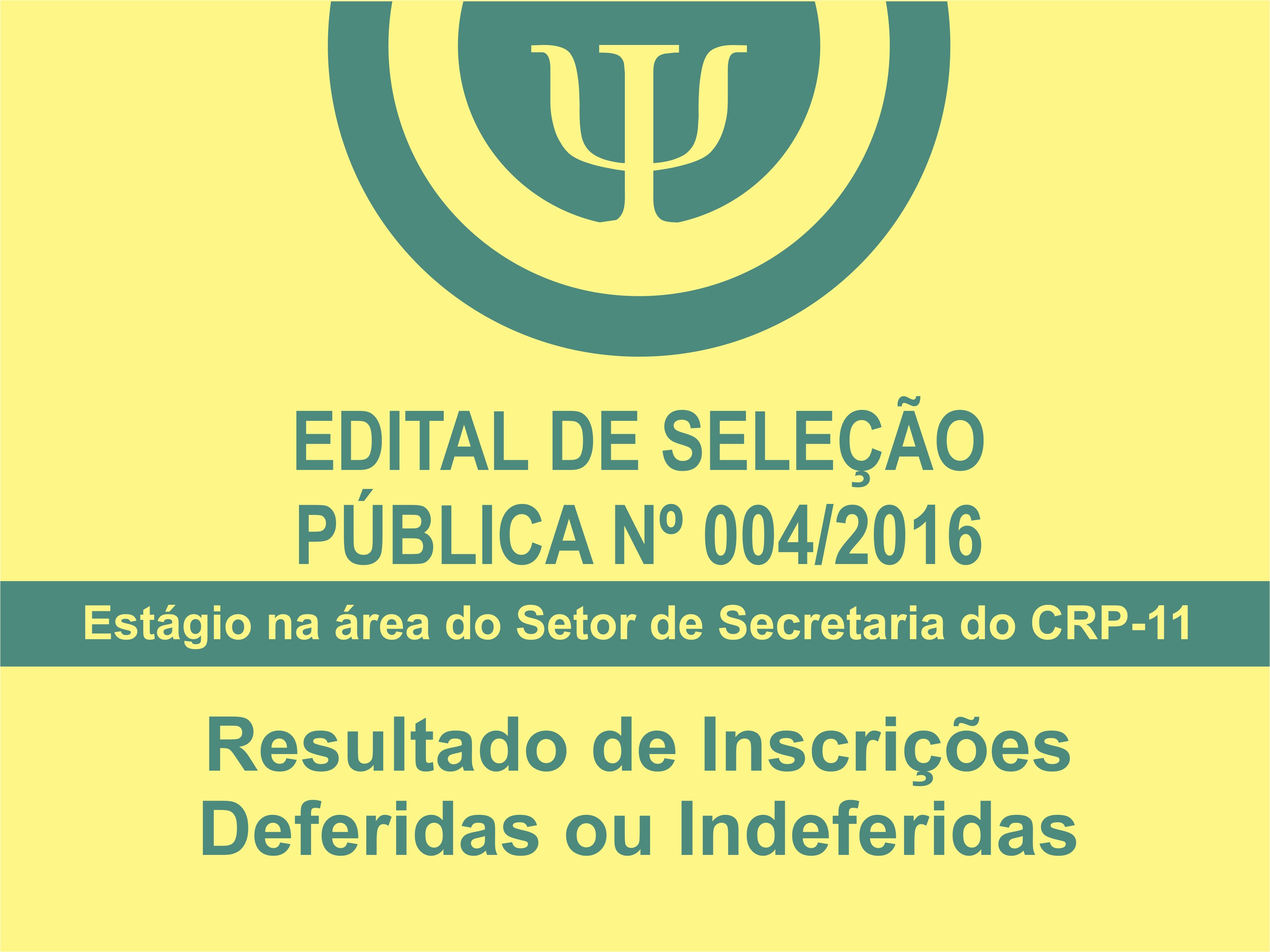 EDITAL DE SELEÇÃO PÚBLICA Nº 004/2016. SELEÇÃO PÚBLICA PARA HABILITAÇÃO DESTINADA À COMPOSIÇÃO DE CADASTRO DE RESERVA E PREENCHIMENTO DE 01 VAGA PARA ESTÁGIO NA ÁREA DO SETOR DE SECRETARIA DO CRP-11.