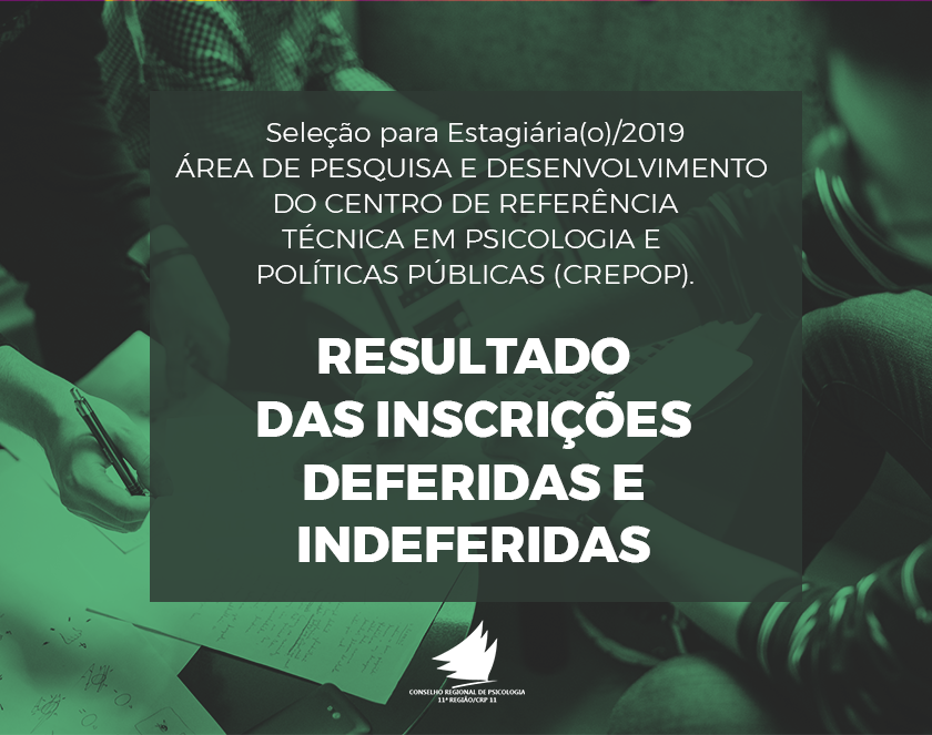 Acaba de ser publicado resultado de inscrições deferidas e indeferidas da seleção pública para habilitação destinada à composição de cadastro de reserva e preenchimento de 01 vaga para estágio na área de Pesquisa E Desenvolvimento do Centro De Referência Técnica em Psicologia e Políticas Públicas (CREPOP).
