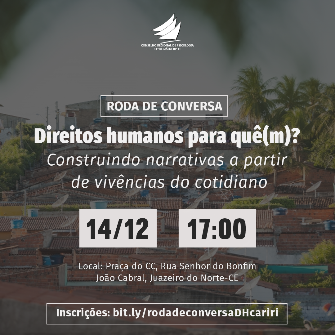 CRP11 promove roda de conversa "Direitos humanos para quê(m)? Construindo narrativas a partir de vivências do cotidiano" este sábado, no Cariri