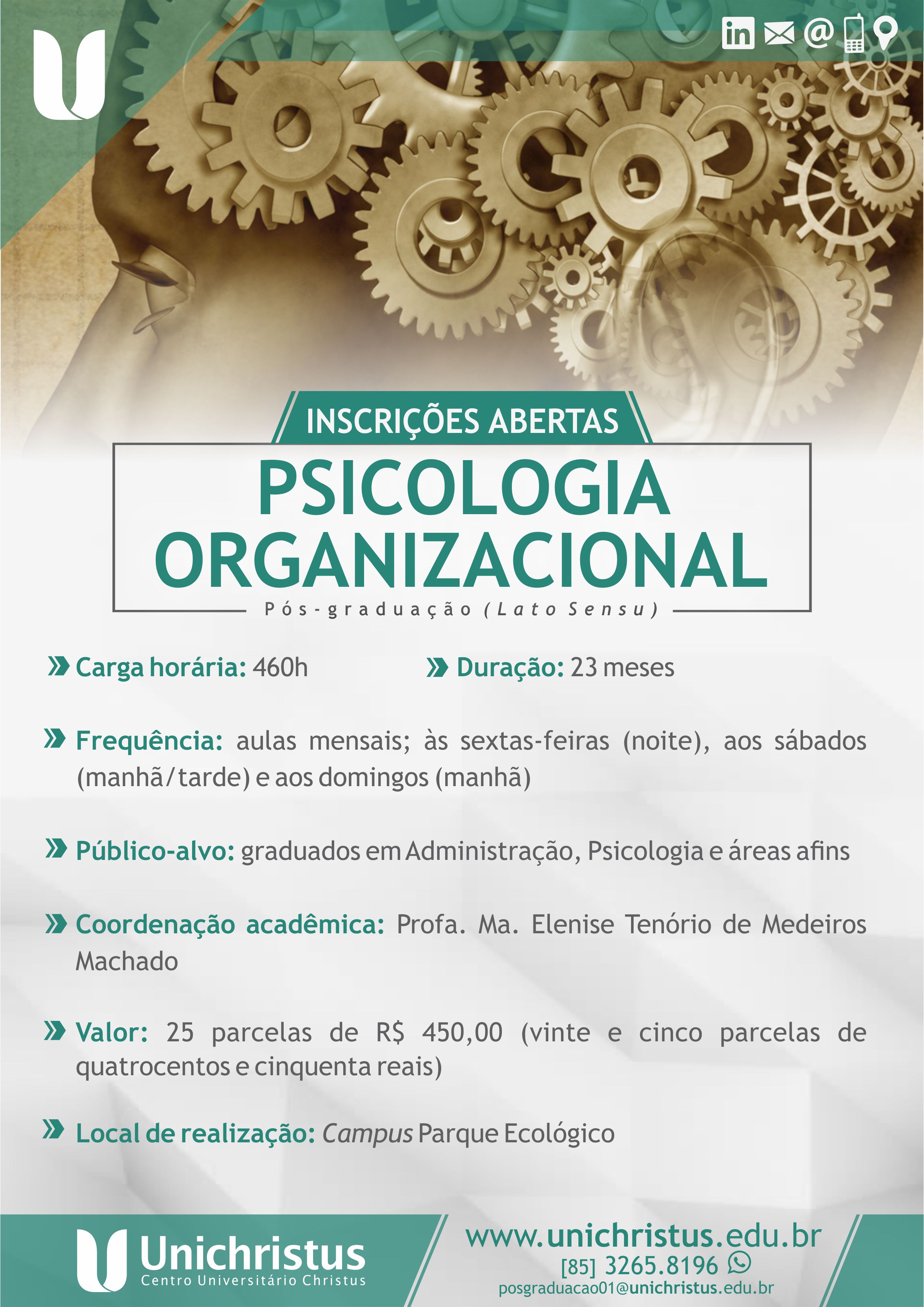pós-graduação em Psicologia Organizacional na Unichristus, voltado