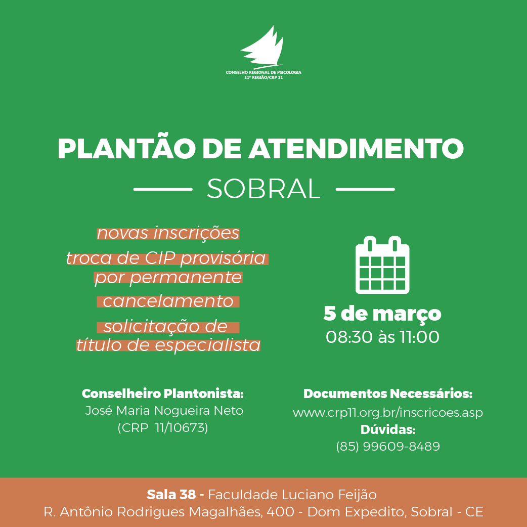 CRP11 realiza plantão de atendimento em Sobral