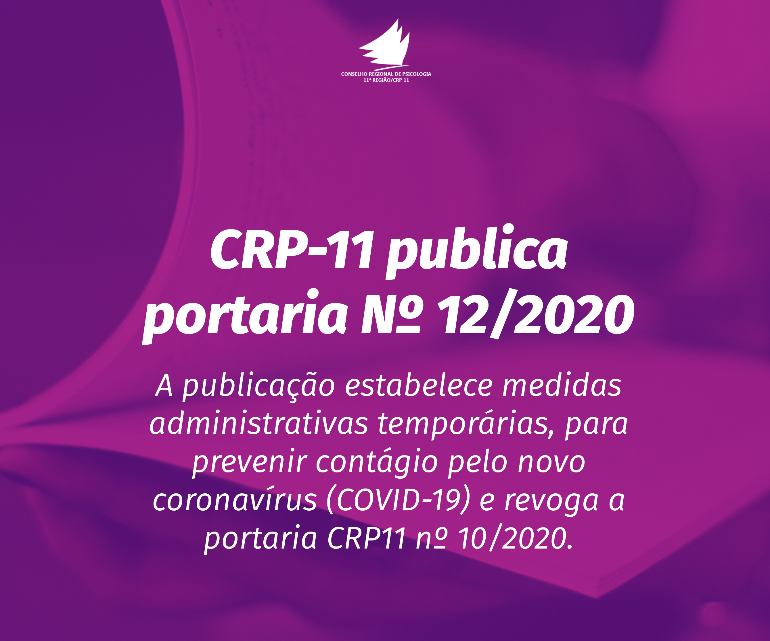 O Conselho Regional de Psicologia 11ª Região torna pública a portaria N° 12/2020, que estabelece medidas administrativas temporárias, para prevenir contágio pelo novo coronavírus (COVID-19) e revoga a