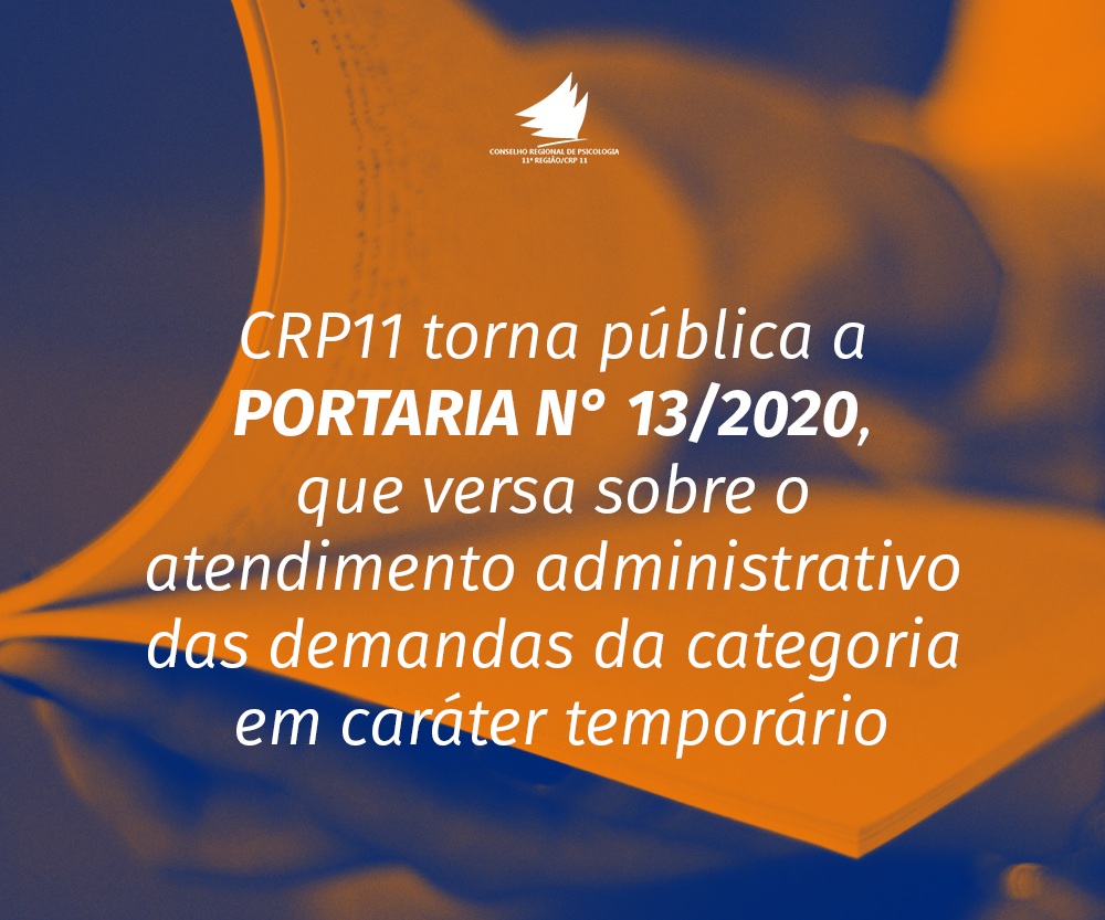 CRP11 torna pública a PORTARIA N° 13/2020, que versa sobre o atendimento administrativo das demandas da categoria em caráter temporário