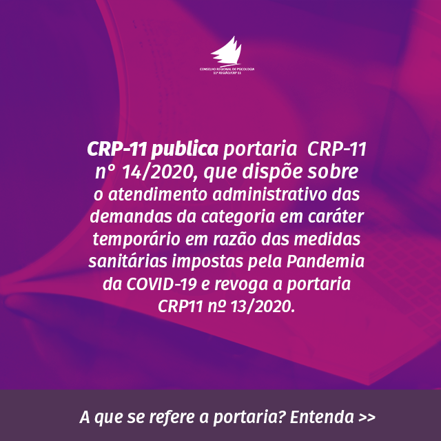 CRP-11 torna pública portaria N° 15/2020, que trata do o atendimento administrativo das demandas da categoria em caráter temporário e revoga a portaria CRP11 nº 13/2020