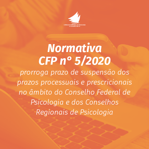 Normativa CFP n° 5/2020 prorroga prazo de suspensão dos prazos processuais e prescricionais no âmbito do Conselho Federal de Psicologia e dos Conselhos Regionais de Psicologia