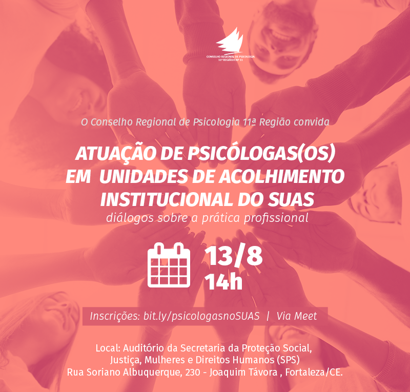O CREPOP e a Comissão de Psicologia e Assistência Social realizam, no dia 13 de agosto às 14 horas, o evento Atuação de psicólogas/os em unidades de acolhimento