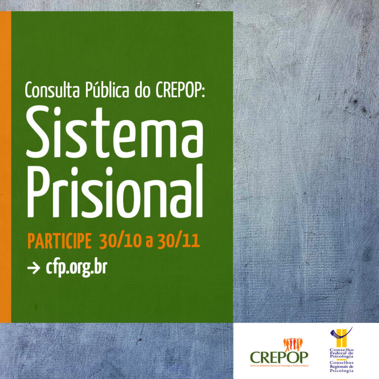 O Conselho Federal de Psicologia (CFP), por meio do Centro de Referências Públicas e Políticas (CREPOP), abre nova consulta pública, a partir desta sexta-feira (30), para que as(os) psicólogas(os) possam contribuir com a futura publicação “Referências Técnicas para Atuação de Psicólogas(os) no Sistema Prisional”.