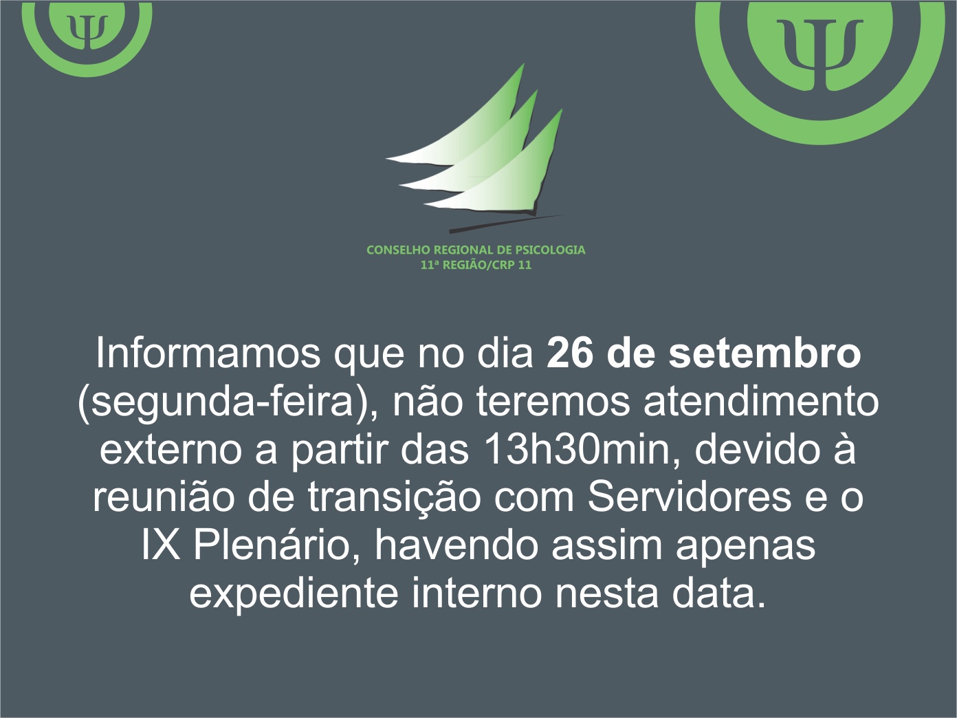 Comunicado de atendimento no dia 26 de setembro